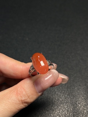 C35152449 Red Agate Ring Non-Gold Adjustable Total Weight Approx. 6.38g