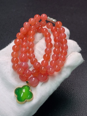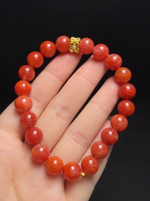 C26985988 Red Agate Bracelet, 99% gold content in beads, non-gold remainder, visible organic matter, total weight approx. 23.4g, size approx. 9.1mm