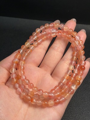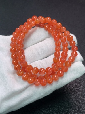 C35092910 Red Agate Bead Strand with Visible Organic Matter, Total Weight Approx. 34.41g, Size ~6.5mm