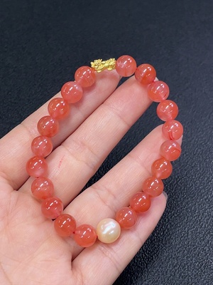 C31621166 South Red Agate Bracelet with Visible Organic Matter, Total Weight Approx. 12.71g, Bead Size 6.7mm, Paired with Crystal