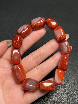 C18049234 South Red Agate Bracelet, Approx. 11.6mm, Total Weight Approx. 42.11g, Visible Organic Matter