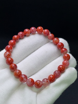 C32815743 Red Agate Bracelet with Visible Organic Matter, Total Weight Approx. 10.55g, Size About 6.7mm