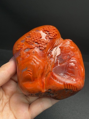 C28220842 South Red Agate Ornament with Visible Organic Matter, Total Weight Approximately 308.57g