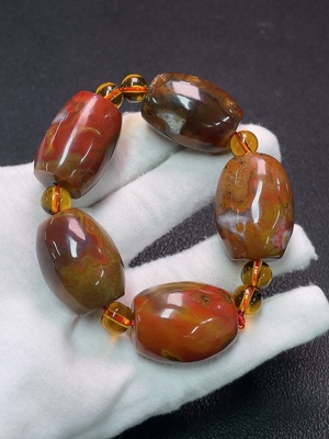 C35092928 Warring States Red Agate Bracelet with Non-Natural Gemstone, Total Weight Approx. 110.93g, Size About 22.5mm