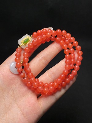 C34951669 『South Red Agate Bracelet with Jadeite, Total Weight Approx. 9.54g, Size About 6mm』