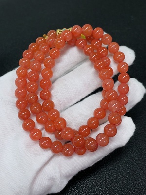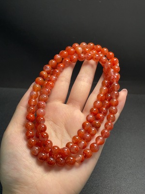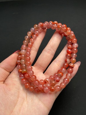 C33889489 South Red Agate Bead Strand with Visible Organic Matter, Total Weight Approximately 53.6g, Bead Size About 7.1mm