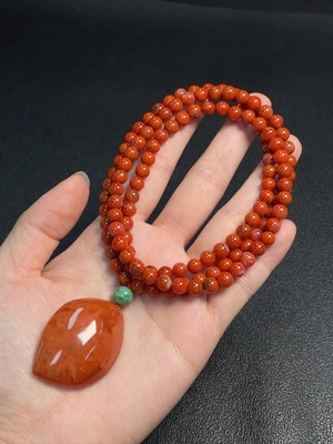 C16725971 『South Red Agate Bead Necklace, approx. 12.6mm, total weight approx. 44.01g』