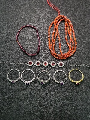 C34990611 Crystal + Garnet + Red Agate with Visible Organic Matter Jewelry Non-Gold Total Weight Approx. 23.93g Sell as a Lot