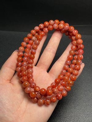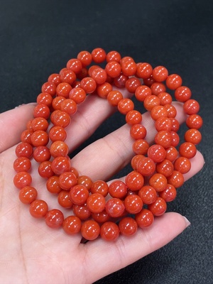 C37385290 South Red Agate Bead Strand, Red Only, Visible Organic Matter, Total Weight Approx. 66.41g, Size About 7.4mm
