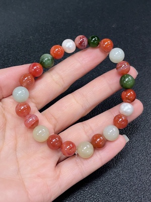C36304428 South Red Agate Bracelet with Hetian Jade and Pearls, Visible Organic Matter in South Red, Total Weight Approximately 26.18g, Size About 8.9mm