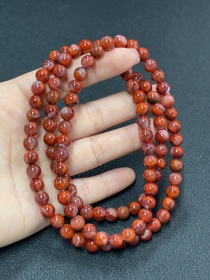 C24744799 South Red Agate Bead Necklace, Total Weight Approx. 23.88g, Bead Size 5.6mm, Visible Organic Inclusions, Non-Gold-Inlaid