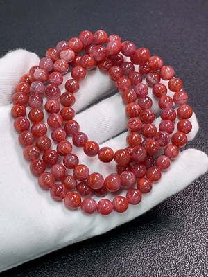 C28221771 South Red Agate Bead Strand, approx. 8.1mm, total weight approx. 81.08g, visible organic matter