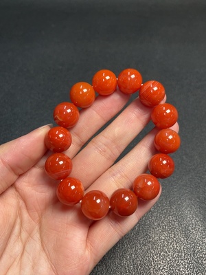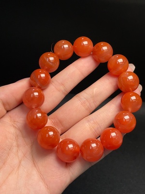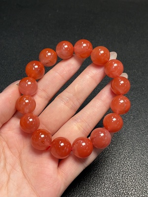 C23685083 Red Agate Bracelet, total weight approx. 39.61g, bead size approx. 11.3mm, visible organic inclusions