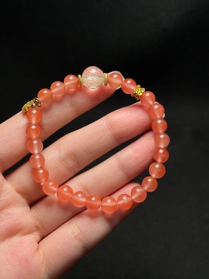 C37431095 Red Agate and Crystal Bracelet with Visible Organic Matter, Total Weight Approx. 12.21g, Size About 6.6mm