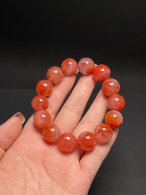 C37369133 Red Agate Bracelet with Visible Organic Matter, Total Weight Approximately 46.44g, Bead Size About 13.3mm