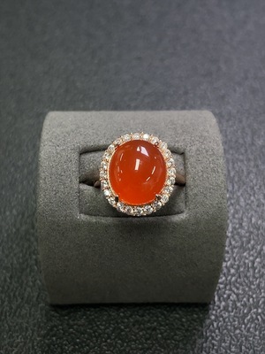 C35152455 South Red Agate Ring, Non-Gold, Adjustable, Total Weight Approx. 3.73g