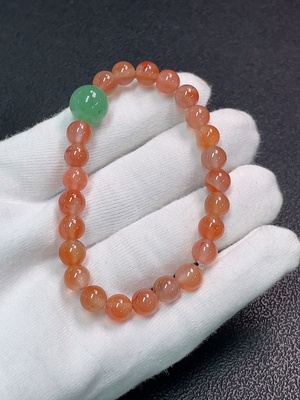 C33868477 South Red Agate Bracelet with Dulong Jade, Total Weight Approx. 14g, Bead Size About 7.2mm