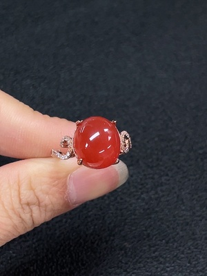 C30536321 Red Agate Inlaid Ring (Non-gold Setting, Adjustable, Total Weight Approx. 4.69g)