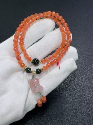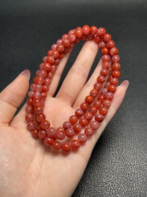 C34067710 Red Agate Bead Necklace with Visible Organic Matter, Total Weight Approx. 57.81g, Sell as a Lot