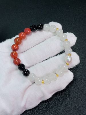 C39584461 Red Only 8.3mm Nanhong Agate Bracelet with Organic Inclusions, Approximately 15.84g, Paired with Pearls (Non-Natural Gemstone Consideration)