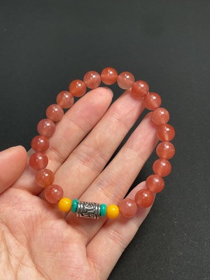 C37447885 Red Agate Bracelet with Visible Organic Matter, Total Weight Approximately 24.63g, Size About 8.4mm