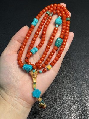 C38502582 Red Agate Bead Necklace, Visible Organic Matter, Non-Natural Accent Stones Considered, Marked Red Without Hallmark, Gold Content 75%, Rest Non-Gold, Total Weight Approx. 49.73g, Size Approx. 6.1mm