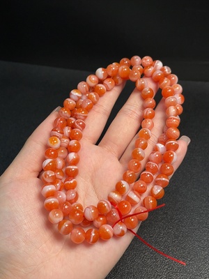 C36241673 South Red Agate Bead Strand with Visible Organic Matter, Total Weight Approx. 58.18g, Sell as a Lot