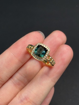 C37455972 Tourmaline ring with diamond accents, 69% gold content, total weight approximately 2.43g, size 12