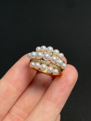 C39555825 Seawater Pearl Inlaid Ring 18k Gold Size 14 Card 2.9-3.3mm Approx. Total Weight About 6.10g With Diamond Inlay