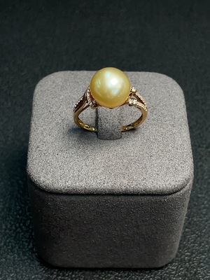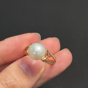 C30469022 18K gold sea water pearl ring, color origin undetermined, set with diamonds, size 13, total weight approx. 5.50g, pearl approx. 11.1mm