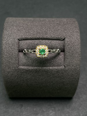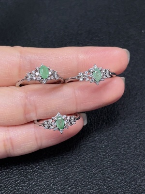 C10017343 Emerald Set Ring Approx. 1.09g Adjustable Size Non-Gold Setting Side Stones Not Tested