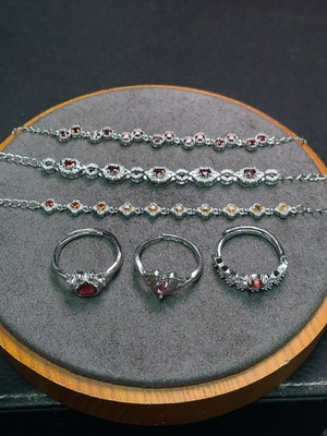 C35093317 Garnet Bracelet + Ring Non-Gold Adjustable Total Weight Approx. 16.2g Sell as a Lot