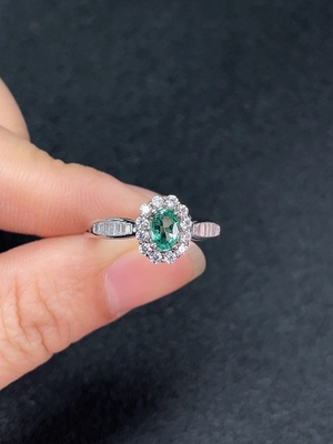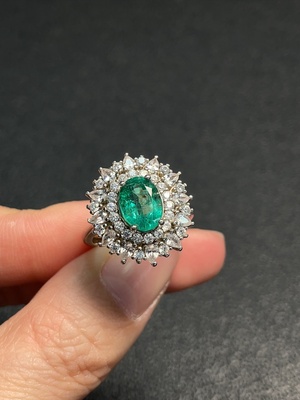 C36302563 18K Beryl Ring with Diamonds, Total Weight Approx. 4.95g, Size 15