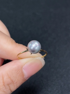 C35120303 Seawater pearl ring, color origin undetermined, 74% gold content, total weight approximately 1.31g, stone size about 7.7mm, size 17