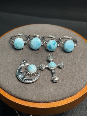 C34991698 Larimar Ring + Pendant Non-Gold Adjustable Total Weight Approx. 21.9g Sell as a Lot