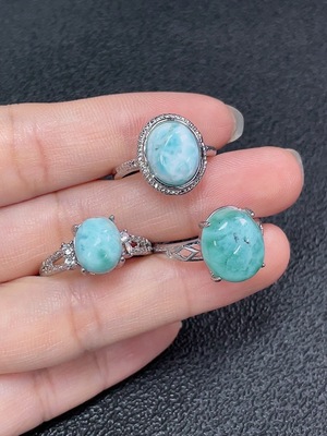 C34950444 Larimar Ring, Non-Gold, Adjustable, Total Weight Approx. 9.8g, Sell as a Lot