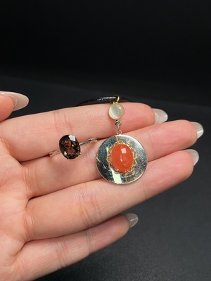 C26009260 Red Agate Pendant + Crystal Ring (Adjustable, Non-Gold Setting, Total Weight Approx. 7.35g)