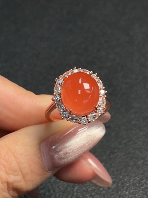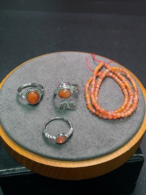 C30536315 South Red Agate Inlaid Ring Non-Gold Setting Adjustable Size Total Weight Approx. 4.54g