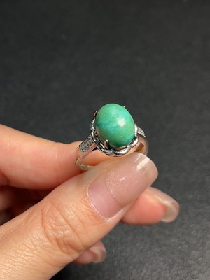 C35086987 Turquoise Ring, Color Origin Undetermined, Contains Other Mineral Components, Non-Gold, Adjustable, Total Weight Approximately 6.3g