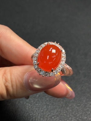 C30512007 South Red Agate Inlaid Ring, Non-Gold Setting, Adjustable, Total Weight Approximately 4.87g