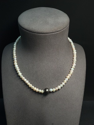 C36302800 Pearl (White) Necklace with Sea Pearl (Black)