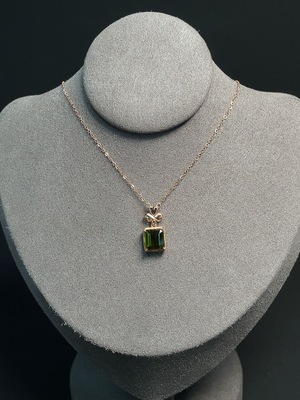 C39556582 Tourmaline Inlaid Necklace (Suspected Gold-Plated in Marked Red Areas, 18k Gold for the Rest, Total Weight Including Chain Approximately 2.60g)