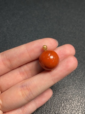 C37456817 18K Red Agate Pendant with Visible Organic Matter, Total Weight Approx. 5.52g, Size About 15.6mm