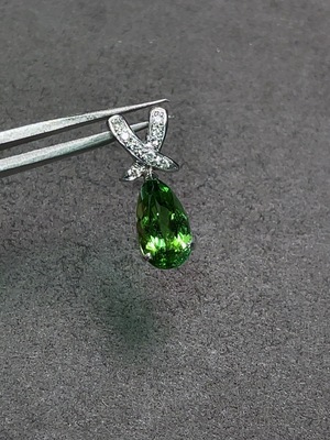 C33922451 Tourmaline Pendant with Pt900 and Diamond Accents, Total Weight Approx. 2.39g, GIC Certificate: Lemon Color Vb Luster Vivid Yellowish Green 2.72ct (by Hallmark)