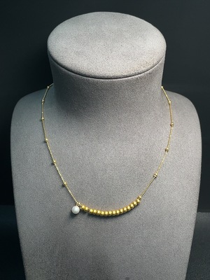 C35202793 Seawater Pearl Necklace with Undetermined Color Origin, Pendant Contains 73% Gold, Large Bead Contains 99% Gold, Remainder 18K Gold, Total Weight Approximately 3.39g, Size Around 6mm