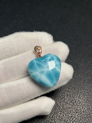 C33922186 Larimar Pendant 18K Gold with Visible Organic Matter and Diamond Accents, Total Weight Approx. 10.53g