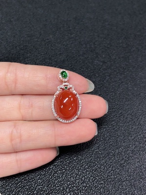 C34067111 18K Red Agate Pendant with Diamond Accents, Colorless, Total Weight Approx. 6.03g, Size Approx. 14.3*13.2mm