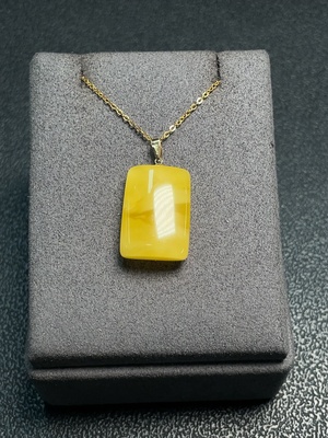 C35096060 Amber Beeswax Pendant Necklace Non-Gold Chain 18K Gold Pendant Total Weight Approx. 3.03g Including Chain