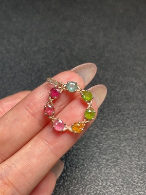 C39555834 Tourmaline Inlaid Pendant 18K Gold Total Weight Approx. 3.41g with Diamond Accents