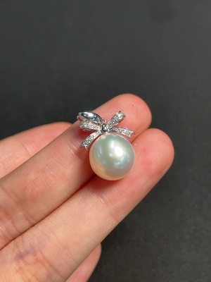 C40710960 18K Sea Water Pearl Pendant with Diamond Accents, Total Weight Approx. 3.15g, Pearl Size About 12.2mm